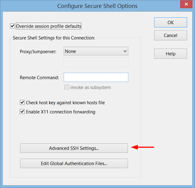 To do this, click 'Configure' where you select Secure Shell as your connection method